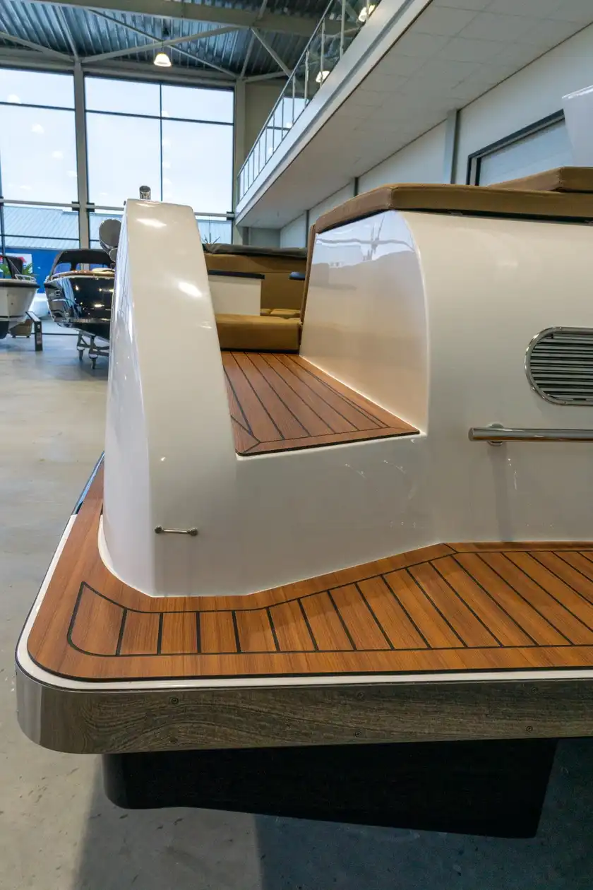De praktische doorloop tussen kuip en zwemplateau maakt instappen eenvoudig. Zo stap je moeiteloos in en uit het water, zonder over banken te hoeven klauteren. Perfect voor een frisse duik, het aanmeren of een ontspannen moment met je voeten in het water.