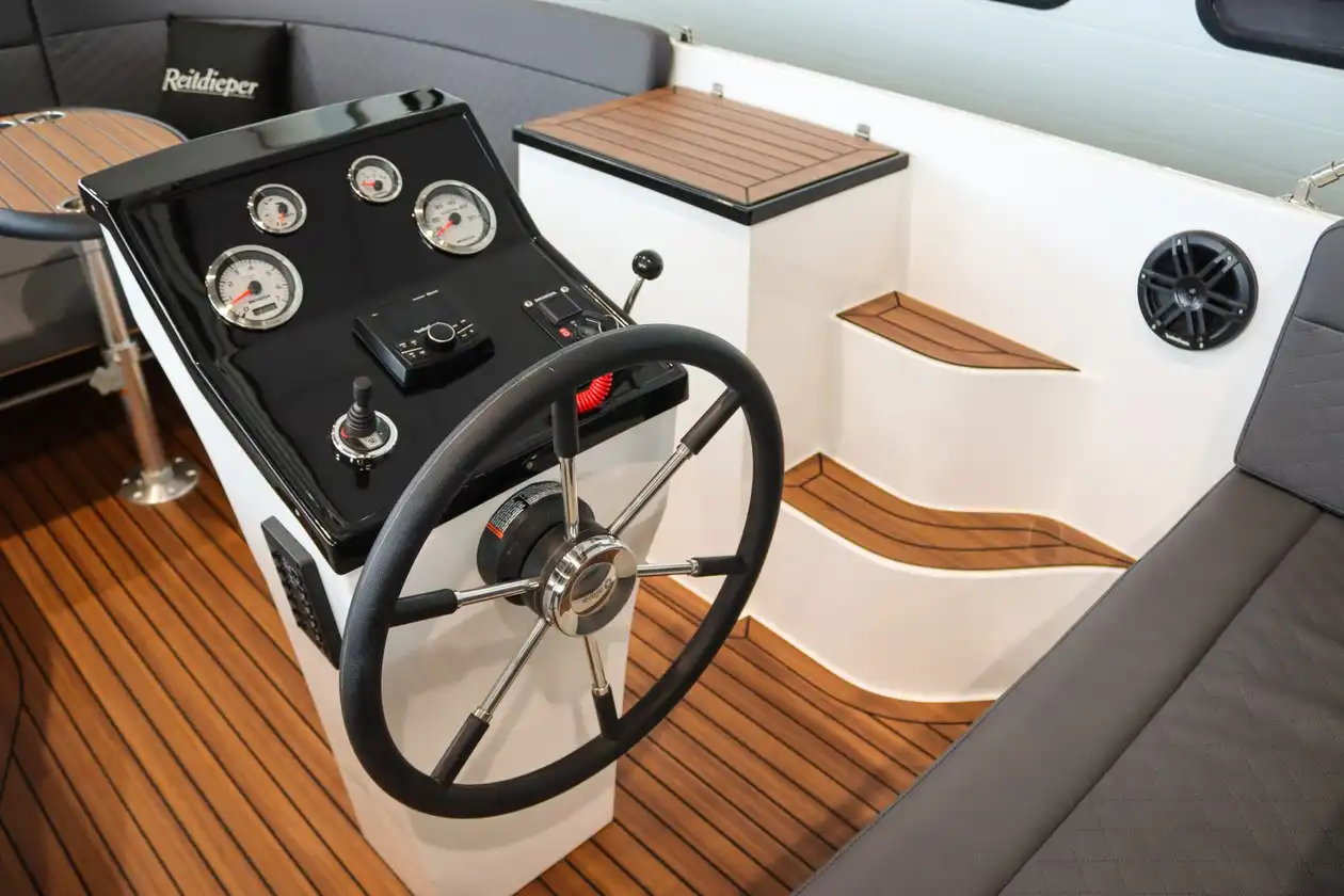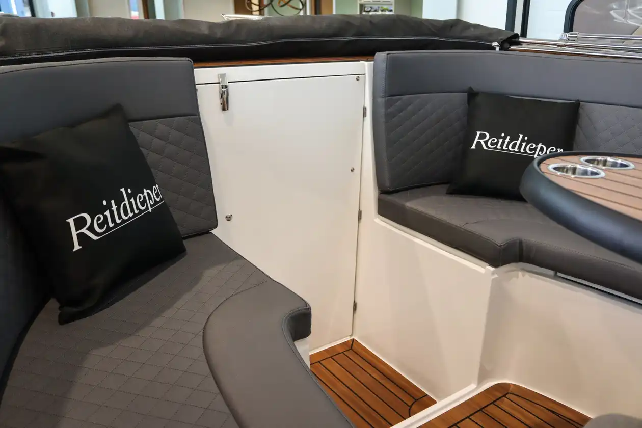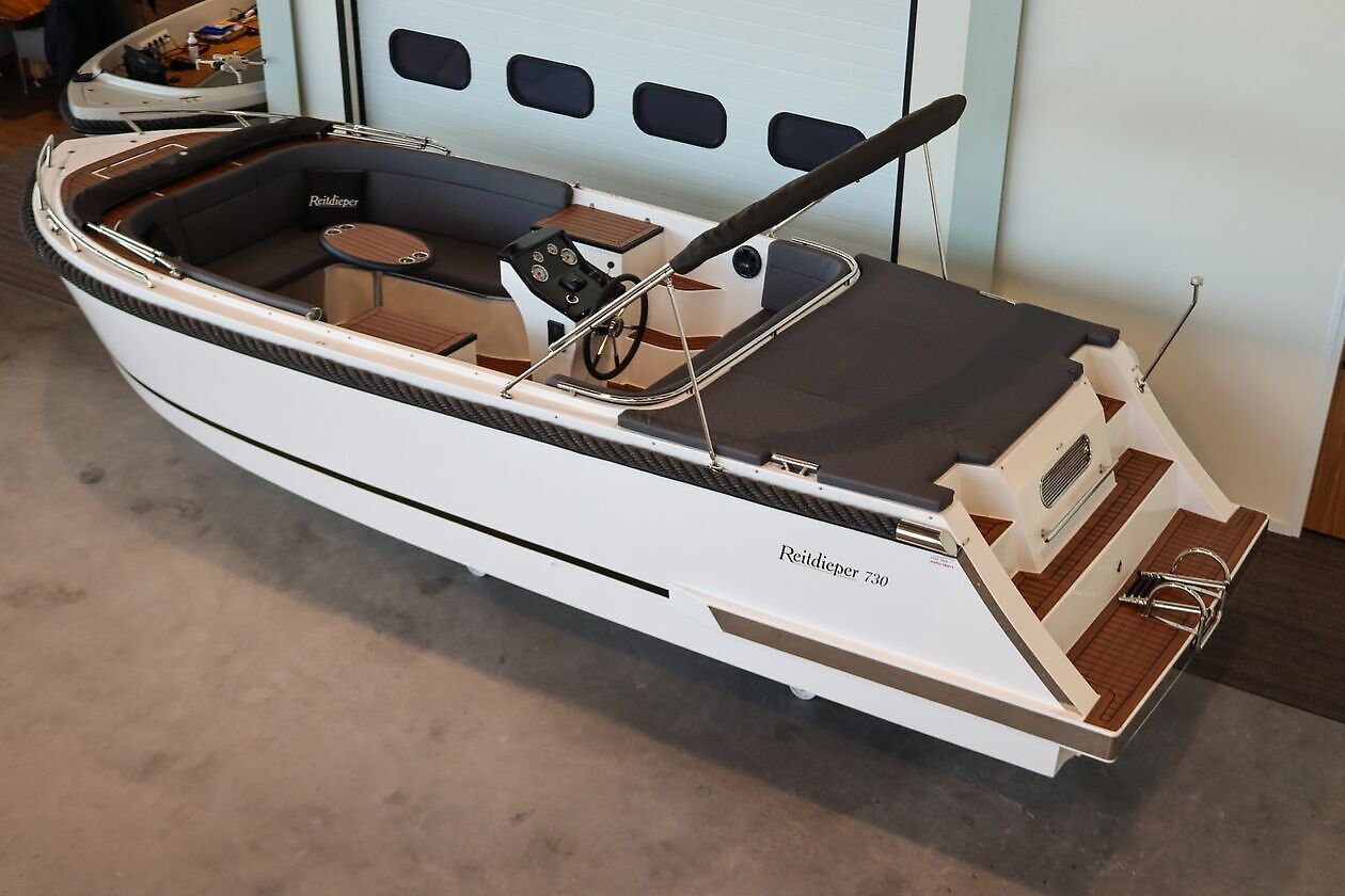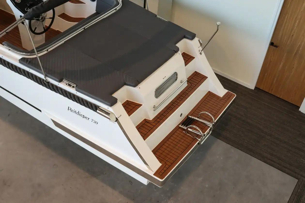 Stijlvol en royaal genieten – met ruimte voor 10 personen. De Reitdieper 730 Tender combineert ruimte, comfort en kwaliteit met een eigentijdse uitstraling. Dankzij de royale indeling, slimme opbergruimte en luxe afwerking voelt elke vaartocht ontspannen en doordacht aan. Deze tender is ontworpen voor mensen die het beste zoeken in gebruiksgemak, uitstraling en vaarcomfort.